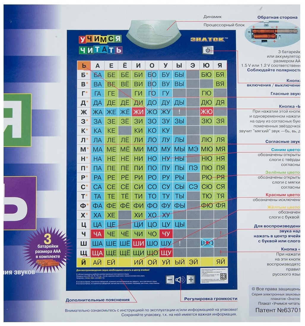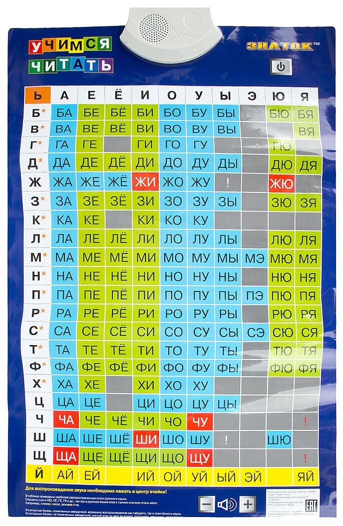 Арт.pl-05-LR электронный звуковой плакат "Учимся читать" /Знаток/