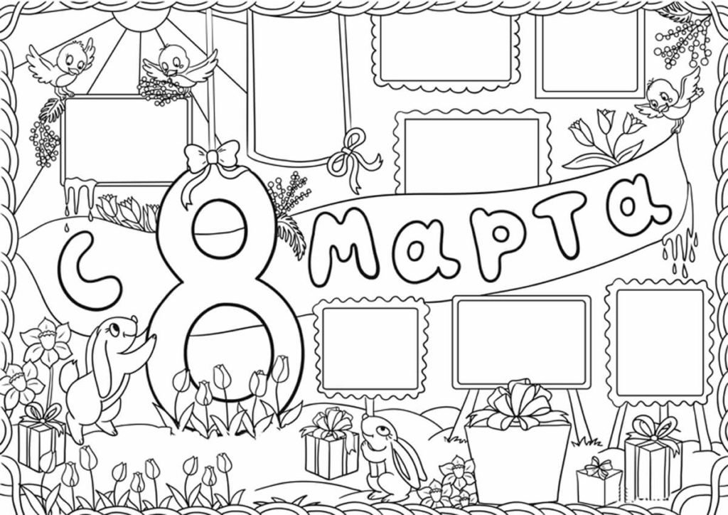 Стенгазета на 8 марта раскраска