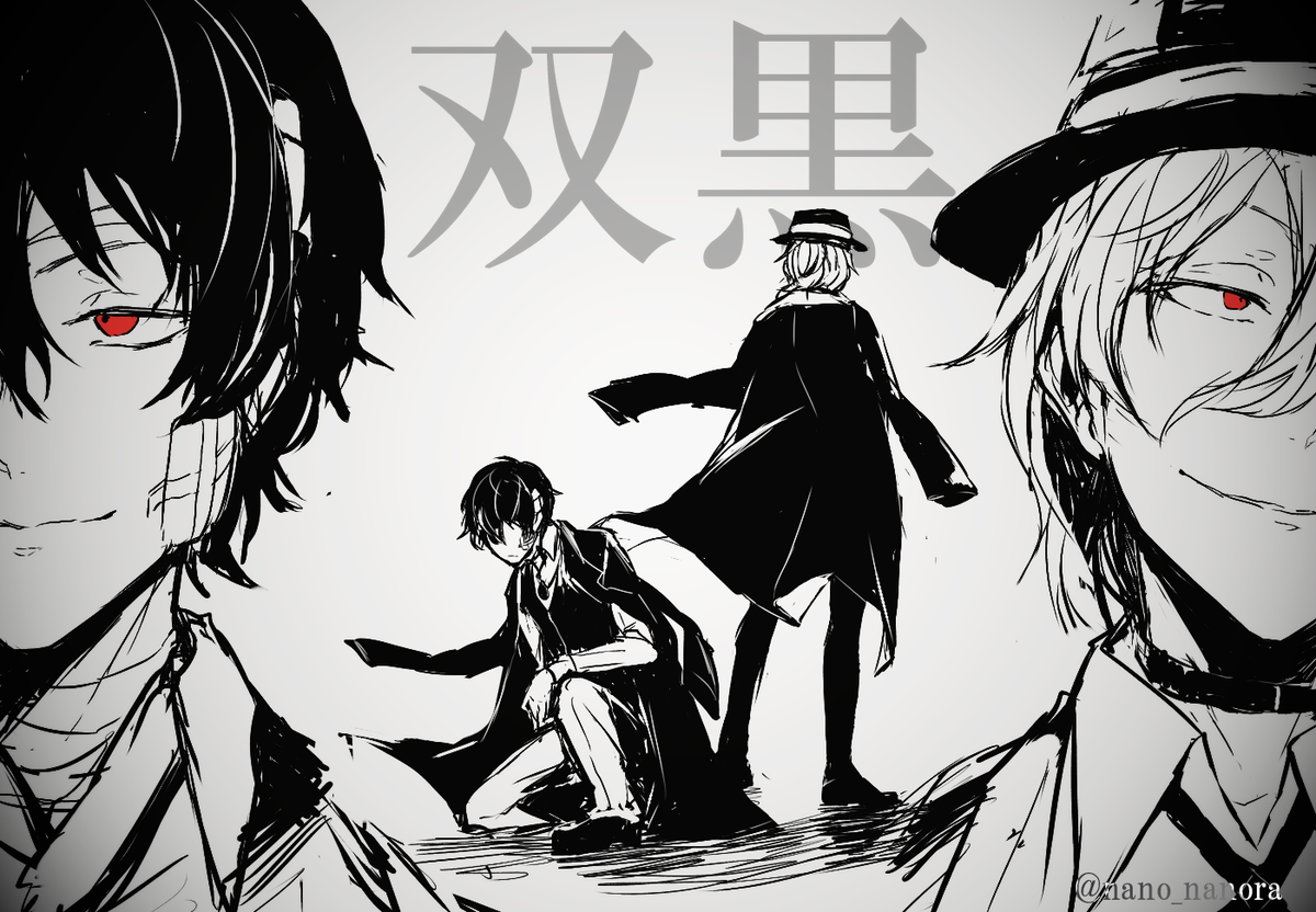 ![Дазай и Чуя черно белые]()