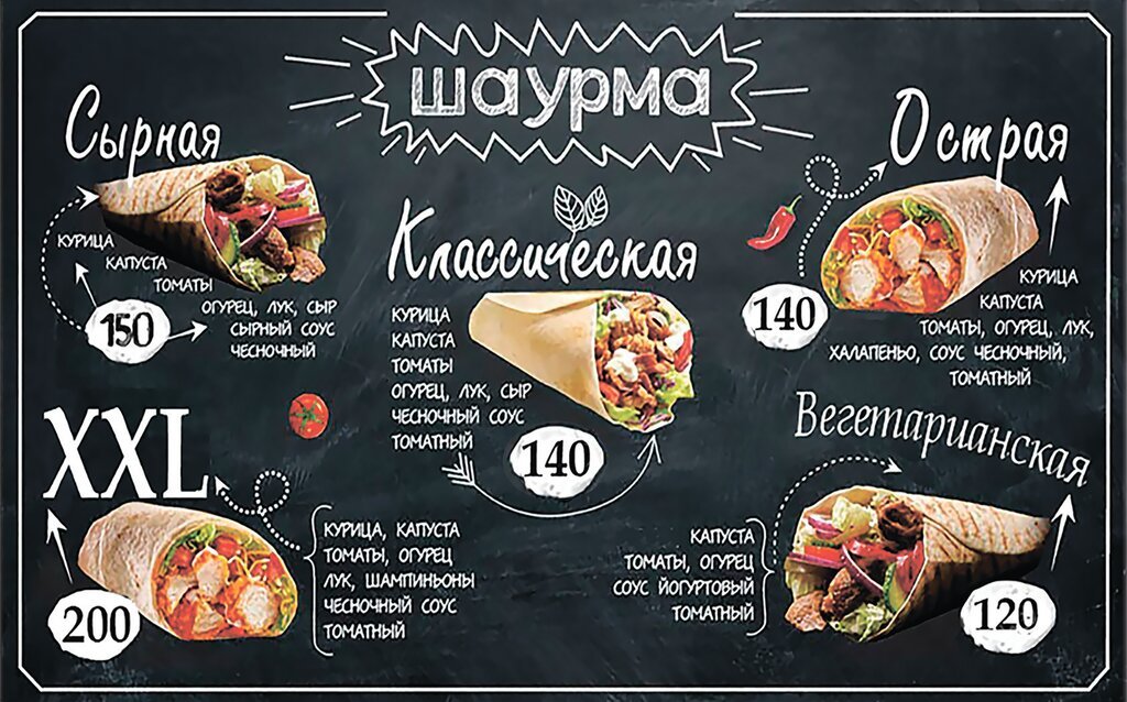 ![Меню вывеска для шаурмы]()