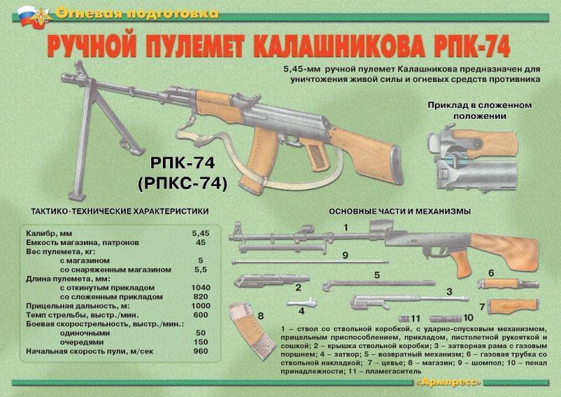 ![Тактико технические характеристики ручного пулемета Калашникова]()