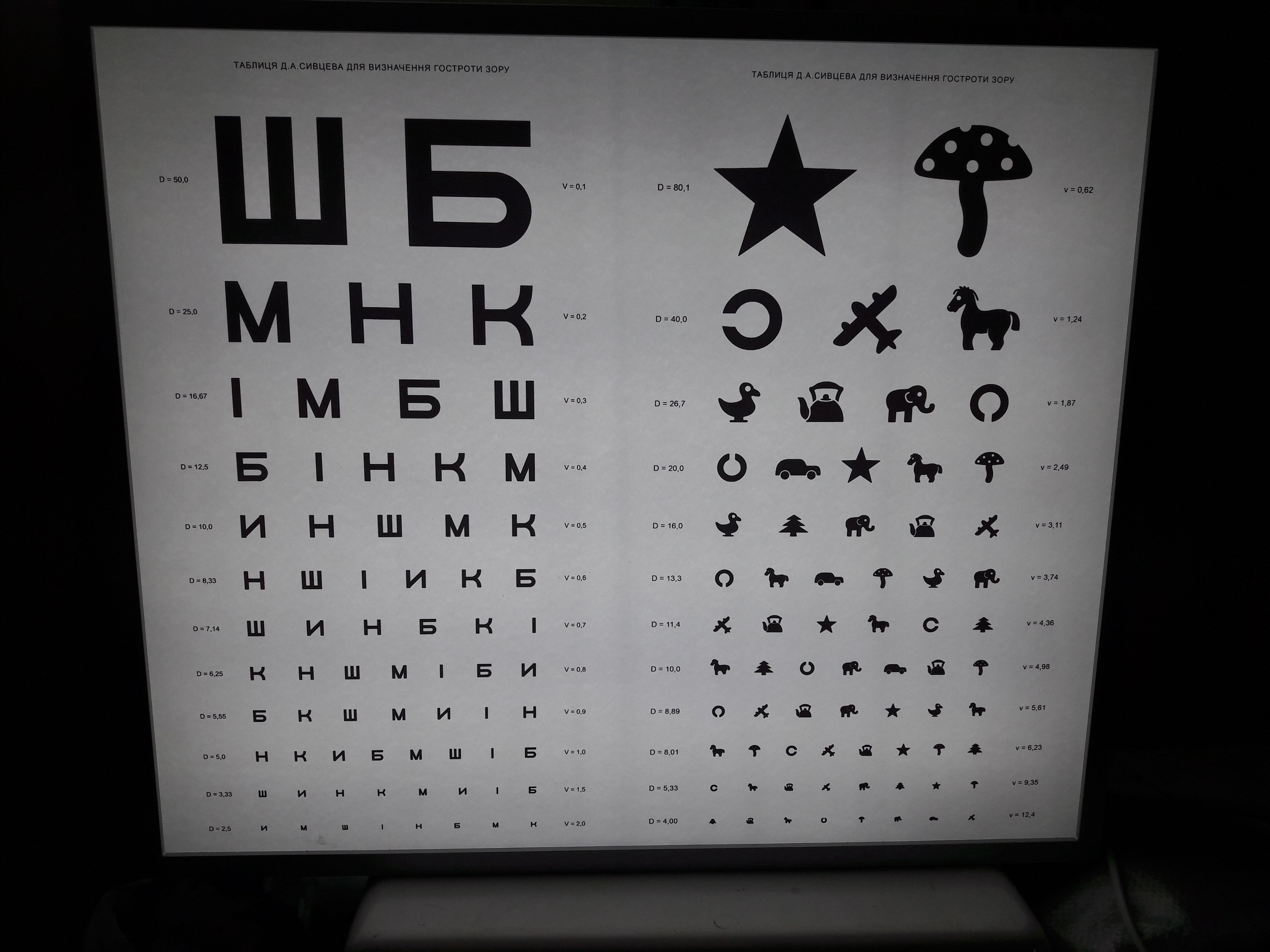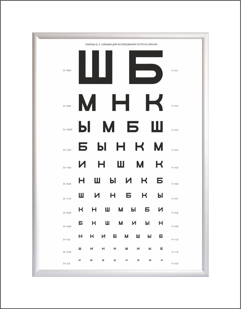 Таблица Сивцева для исследования остроты зрения