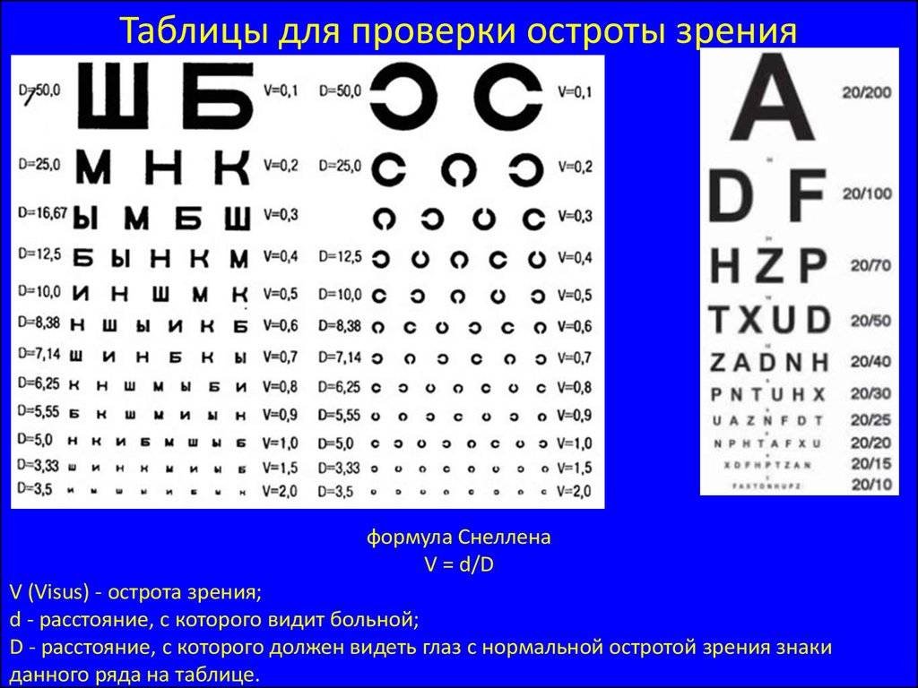 ![Таблицы Снеллена для определения остроты зрения]()