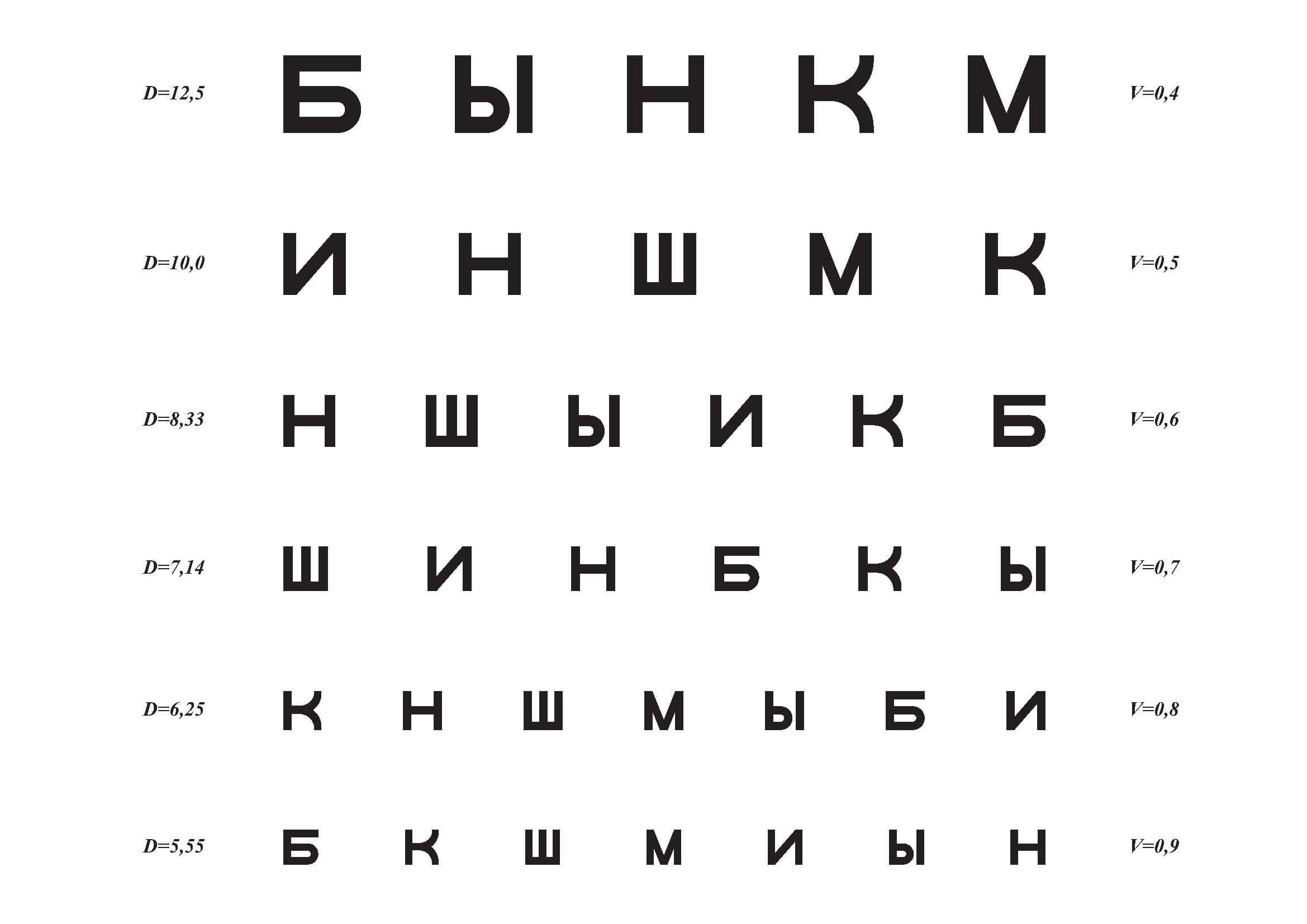 Офтальмолог буквы таблица
