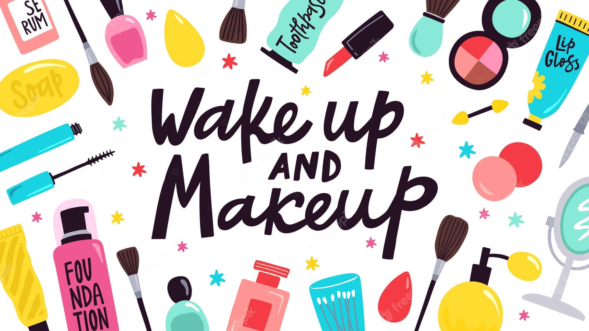![Косметика для ухода нарисованная]()
