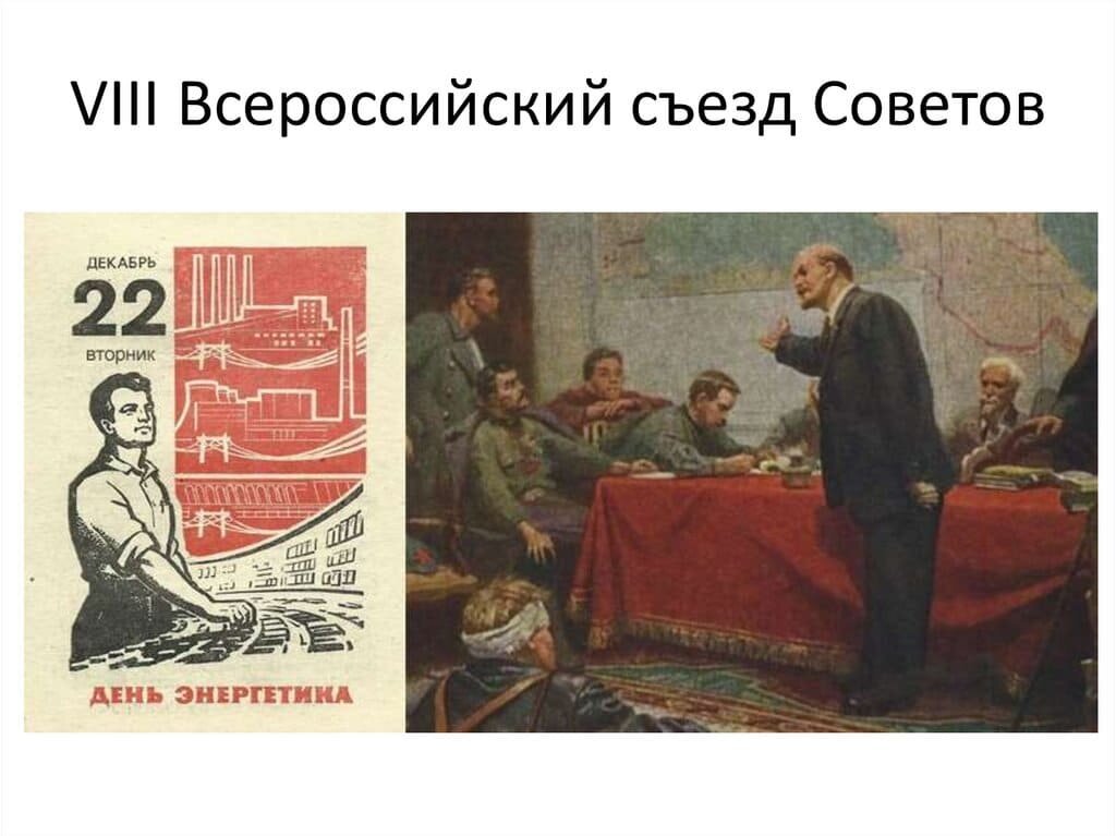 ![VIII Всероссийский съезд советов утвердил план ГОЭЛРО]()