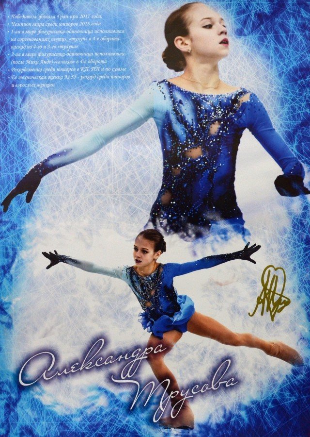 Александра Трусова - талантливая российская фигуристка, которая уже на своем юном возрасте заслужила признание и восхищение мировой фигурной плотности. Ее профессионализм и непревзойденные навыки делают ее одной из самых ярких звезд среди молодежных фигуристок. Сочетание грации, силы и энергии позволяет Александре выступать на высшем уровне и создавать запоминающиеся выступления, которые не оставляют равнодушными зрителей. Она становится истинной иконой для множества любителей фигурного катания по всему миру. Александра Трусова - это символ таланта и стремления к совершенству, который вдохновляет и мотивирует молодое поколение фигуристов.