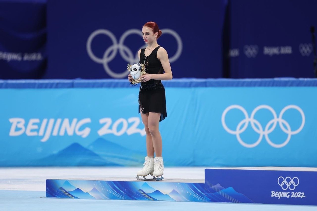 ![Олимпиада по фигурному катанию пьедестал Анна Щербакова]()