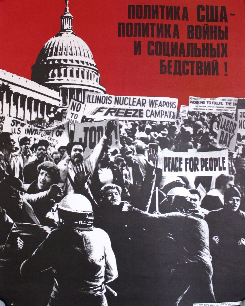 ![Плакаты СССР холодная война]()