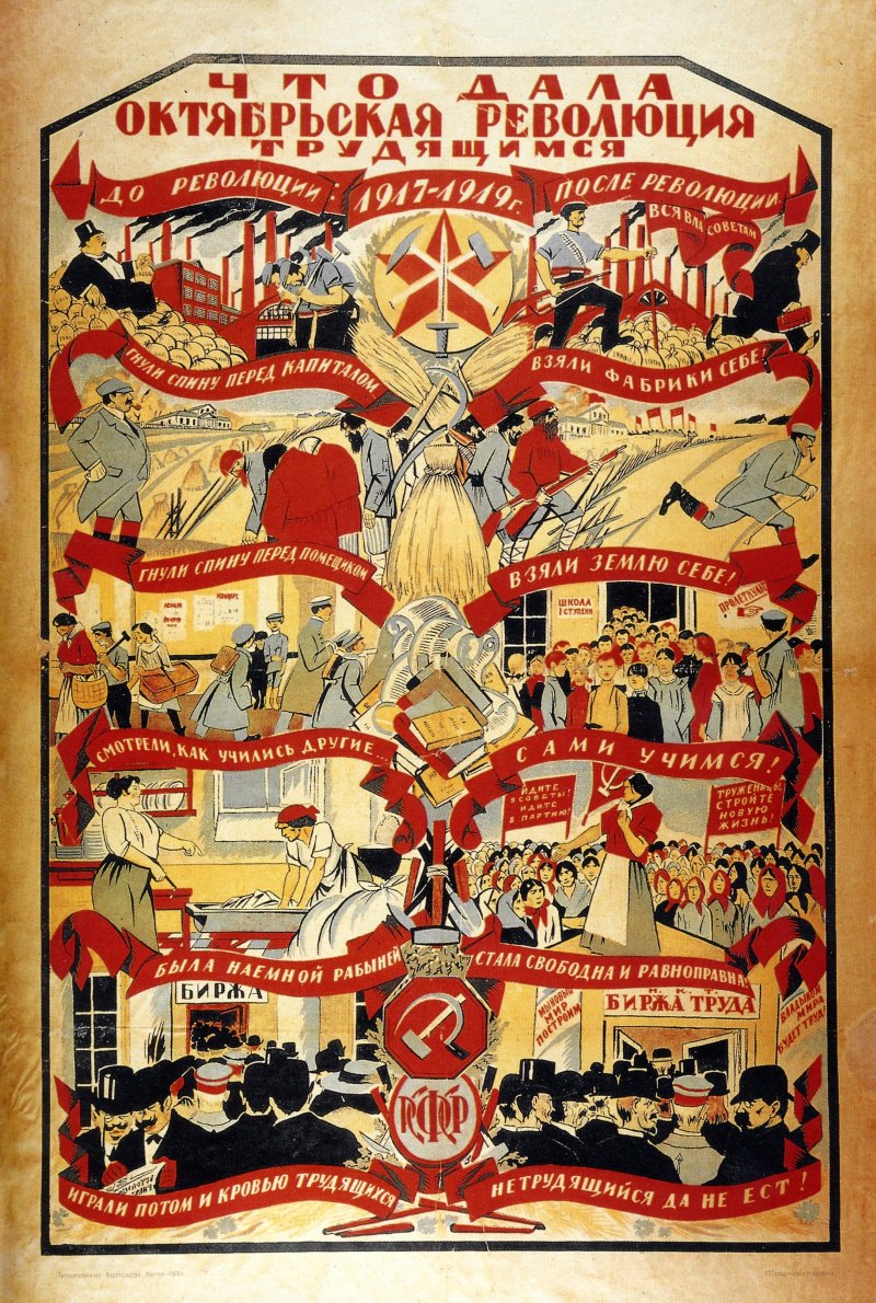 ![Октябрьская революция плакаты СССР]()