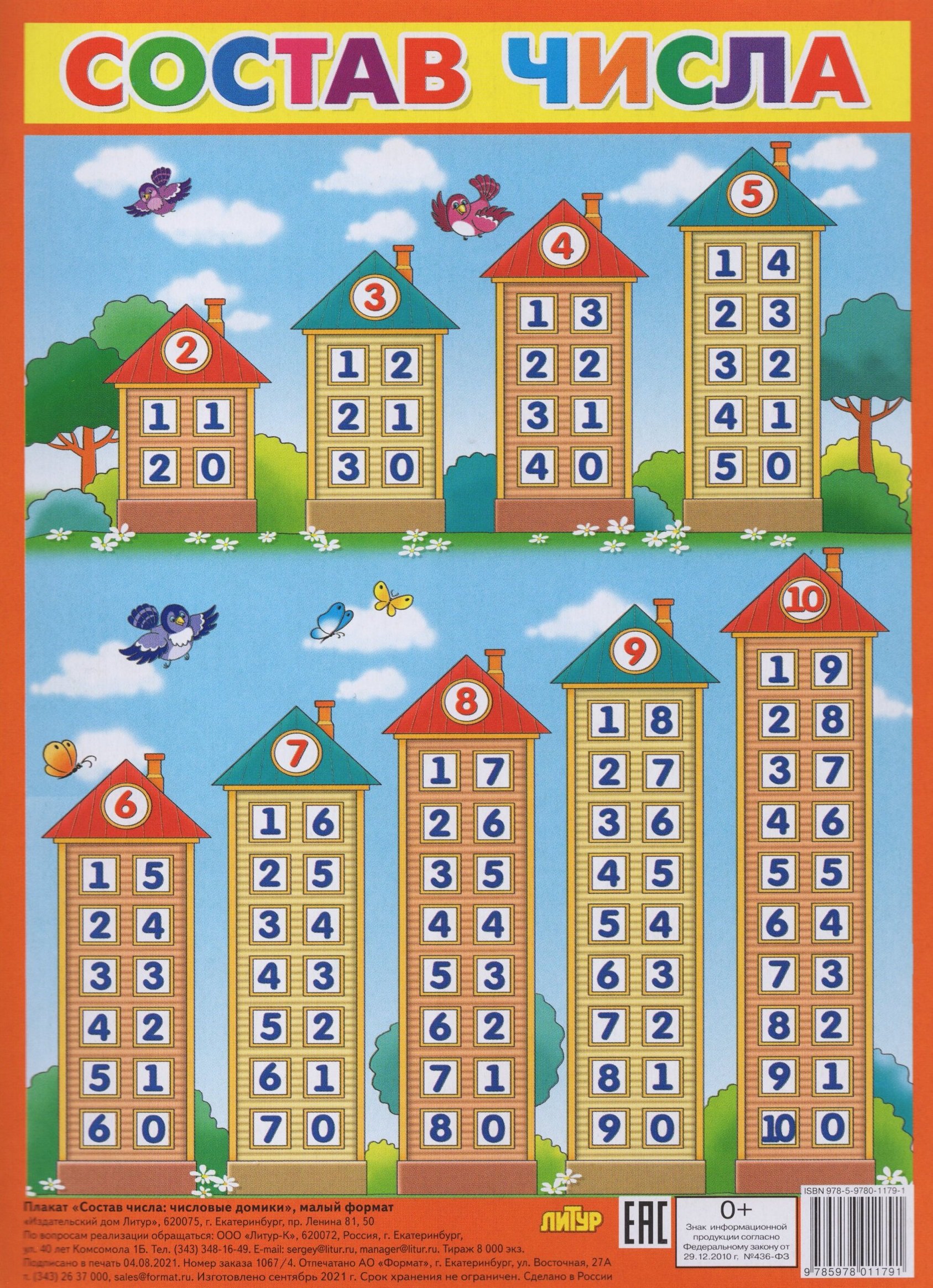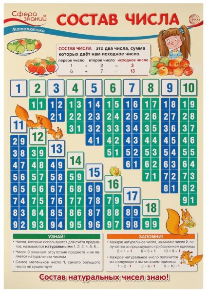 Плакат состав числа - это прекрасное дополнение к учебному процессу, которое поможет школьникам лучше понять структуру и состав чисел. На плакате будут изображены различные числа, с указанием их составляющих, таких как цифры и разряды. Это поможет детям легче запоминать числа и оперировать ими в математических задачах. Кроме того, плакат яркий и наглядный, что делает его привлекательным для учеников. Разместив его на стене классной комнаты или домашнего кабинета, ребенок всегда сможет обратиться к нему при необходимости и усовершенствовать свои навыки работы с числами. Плакат состав числа - это отличный инструмент для успешного обучения и развития математических навыков у детей.