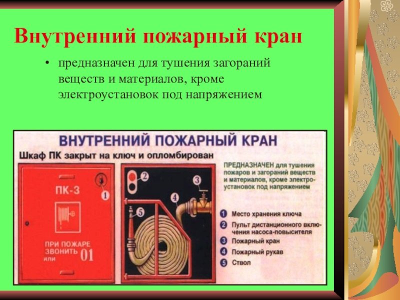 ![Первичные средства пожаротушения внутренний пожарный кран]()