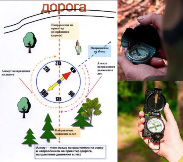 ![Компас ориентирование по азимуту и карте]()