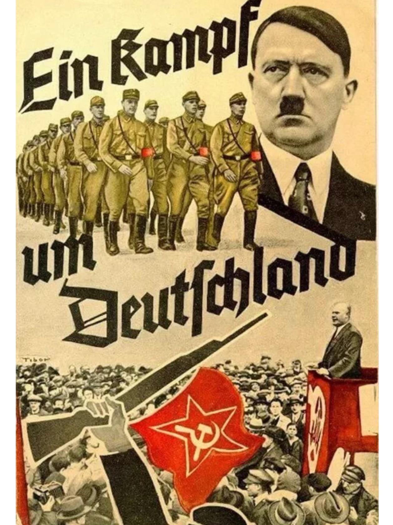 ![Пропагандистские плакаты 3 рейха и СССР]()