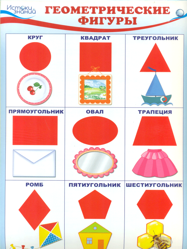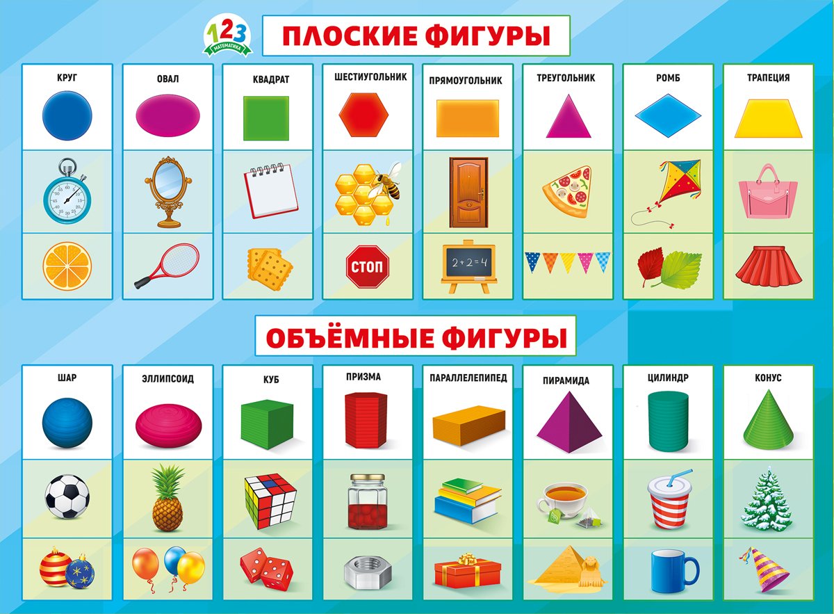 ![Геометрические фигуры плакат для детей]()