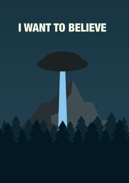 ![Плакат с НЛО I want to believe]()