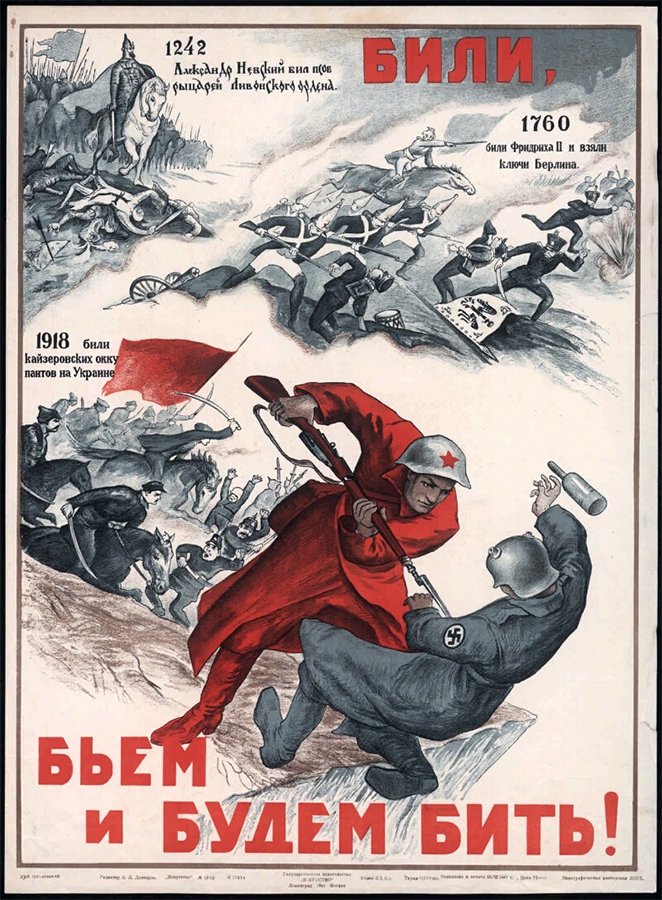 ![Плакат времён Великой Отечественной войны - «били, бьем и будем бить»]()