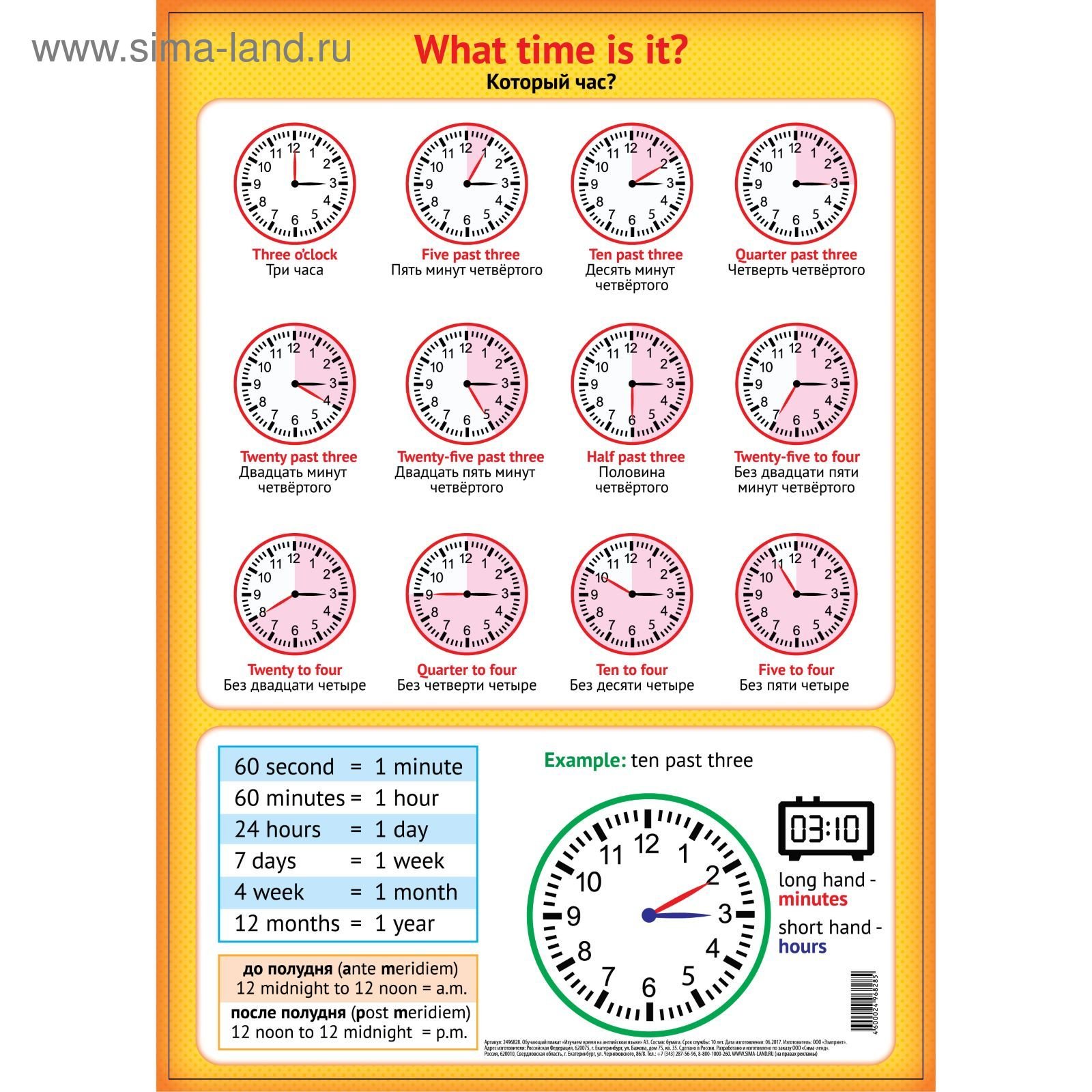 ![Учебный плакат "английский язык. Который час": Формат а2]()
