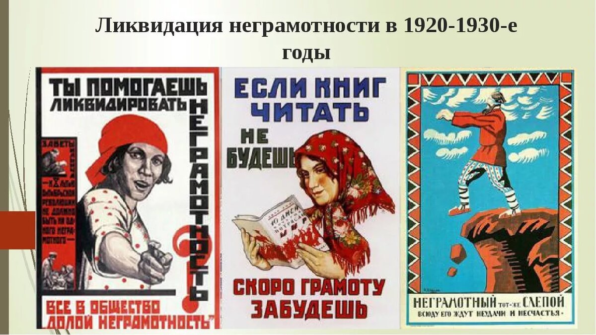 Ликвидация неграмотности в 20-е годы в СССР плакаты