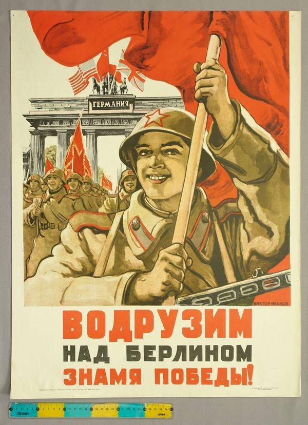 ![Водрузим над Берлином Знамя Победы плакат год]()