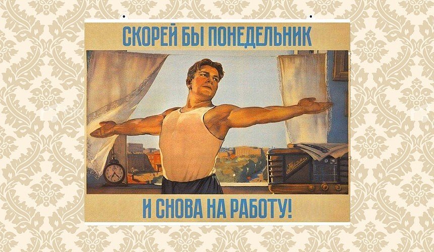 Скорее бы понедельник и снова на работу плакат СССР