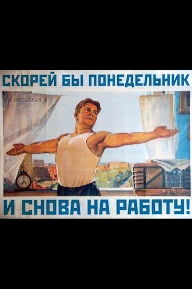 ![Скорее бы понедельник и снова на работу плакат СССР]()