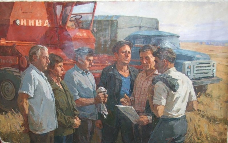 ![Советский плакат комбайнеры]()
