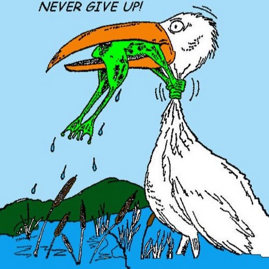 ![Никогда не сдавайся лягушка и цапля]()