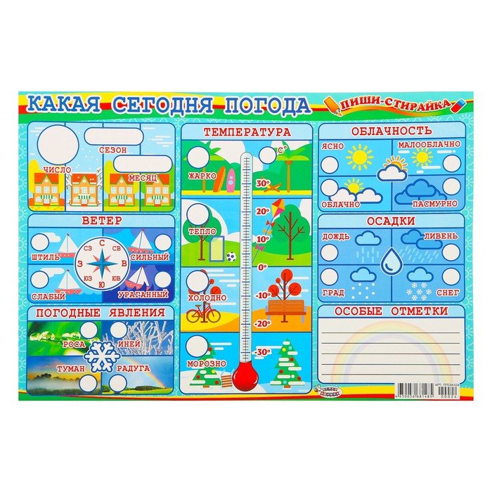 ![Плакат пиши-стирай "какая сегодня погода" а2]()