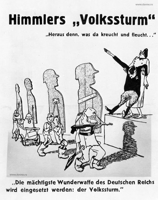 Фольксштурм плакат - это исторический плакат, который связан с Фольксштурмом - народным ополчением Германии во время Второй мировой войны. На плакате изображены символы и лозунги, призывающие граждан присоединиться к Фольксштурму и помочь защитить родину от врагов. Такие плакаты использовались для мобилизации граждан и создания единого фронта в борьбе с вражескими силами. Они являются важными историческими свидетельствами времен войны и позволяют нам лучше понять тот период и его значимость для национальной обороны.