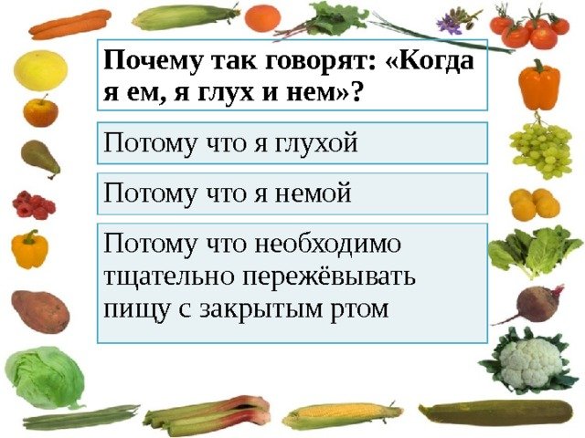 Когда я ем я глух и нем хитер и быстр и дьявольски умен