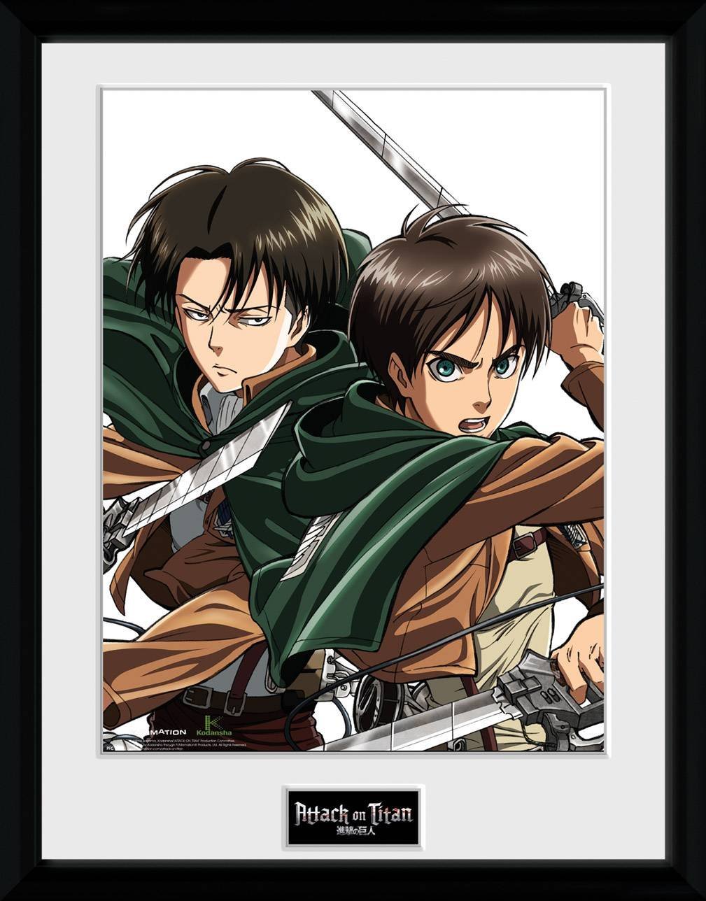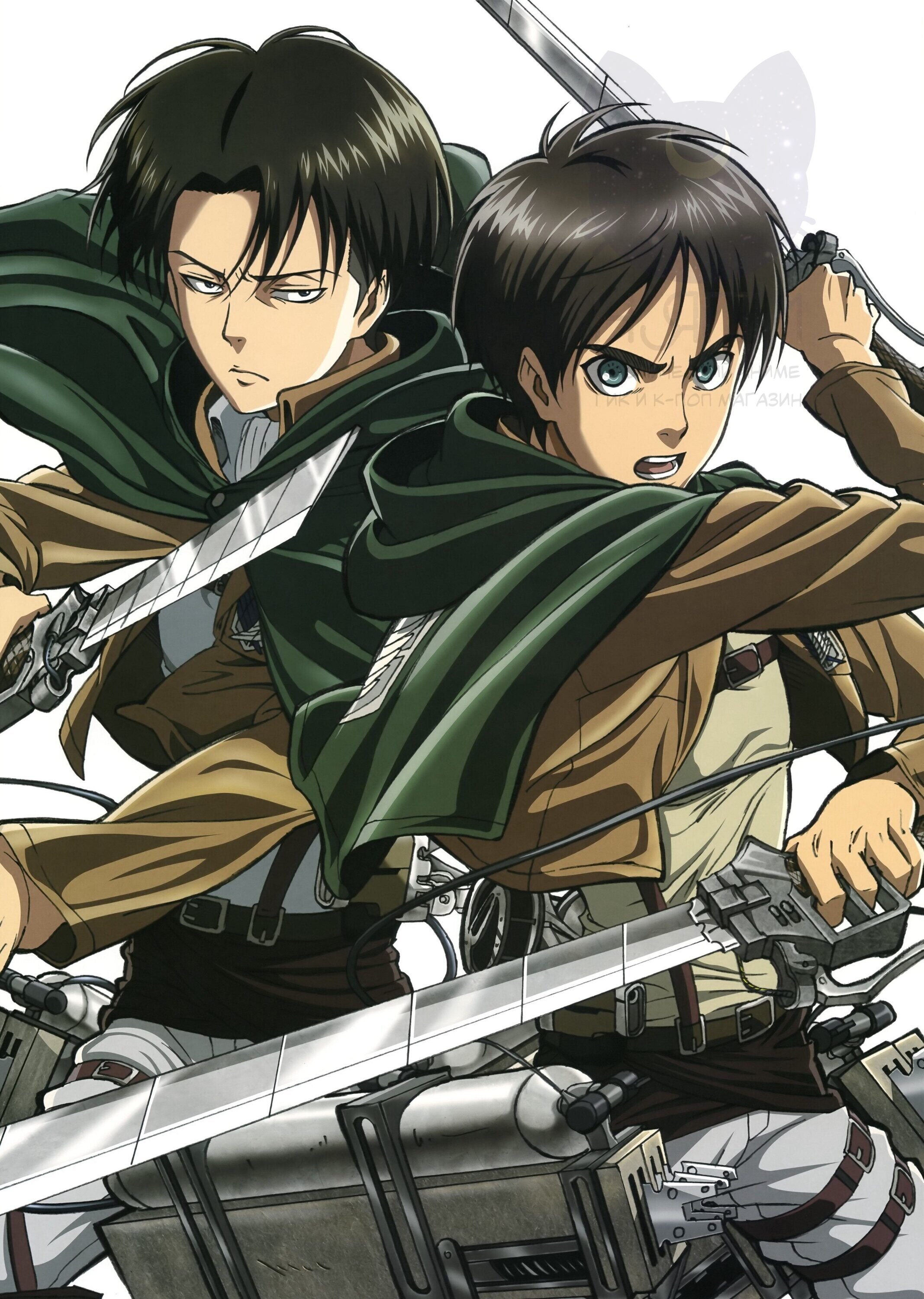 ![Атака титанов постеры Леви и Эрен]()