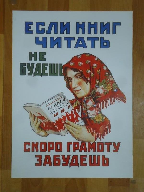 ![Если книг читать не будешь скоро грамоту забудешь Советский плакат]()