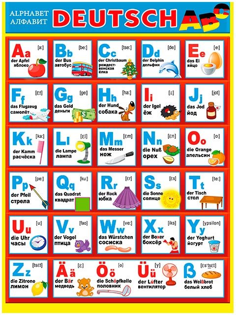 Плакат немецкого алфавита является отличным инструментом для изучения и запоминания букв и звуков в немецком языке. Этот плакат представляет собой наглядное изображение всех 26 букв немецкого алфавита, каждая из которых сопровождается соответствующим словом на немецком языке. Благодаря этому плакату можно легко учиться и практиковать произношение немецких букв и слов. Он может быть полезен как для начинающих изучать немецкий язык, так и для тех, кто уже имеет определенный опыт и хочет усовершенствовать свои навыки. Плакат немецкого алфавита является не только полезным, но и эстетически привлекательным элементом интерьера, который поможет создать яркую и стимулирующую обстановку для изучения немецкого языка.