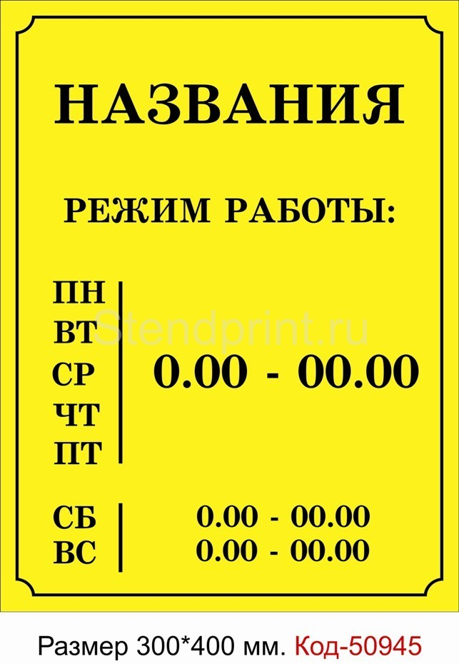 Вывеска режим работы магазина образец