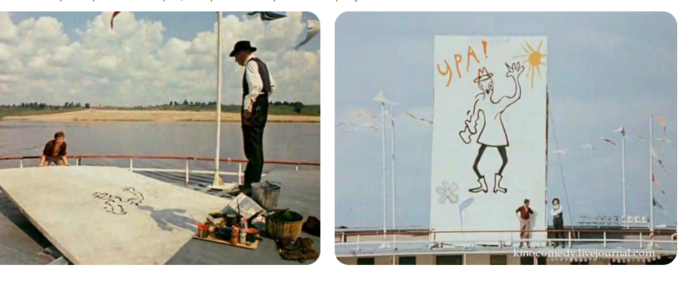 ![Остап Бендер рисует плакат на корабле]()