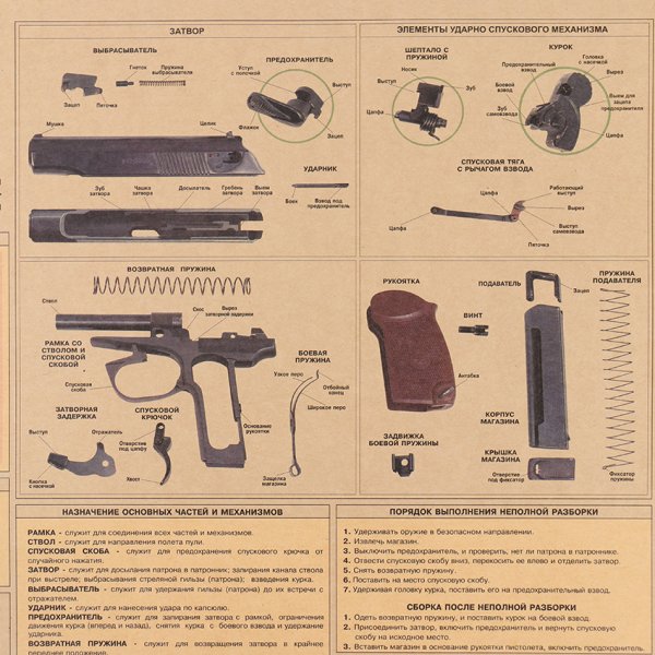 ![ТТХ ПМ 9мм Макарова основные части и механизмы]()