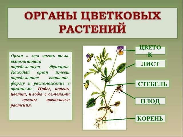 Органы цветковых растений схема