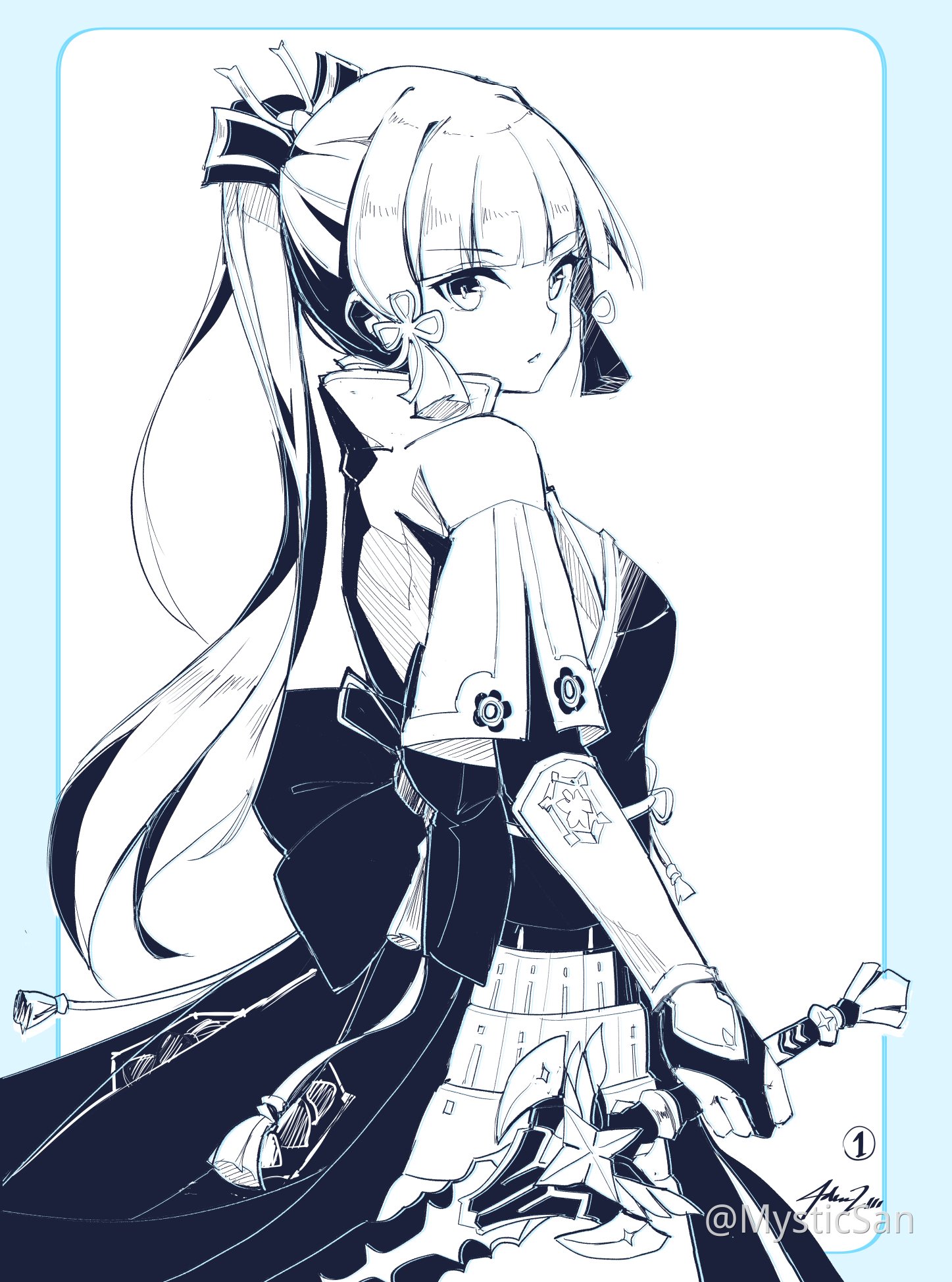 Чёрно белый арт Аяка Геншин