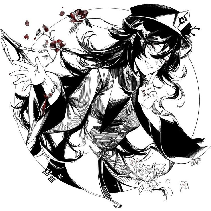 ![Геншин черно белые арты]()