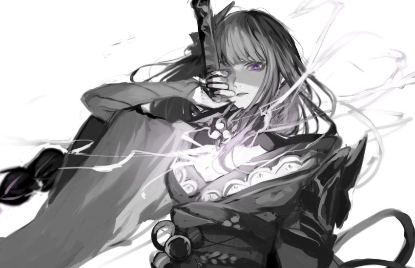 Райден арт Геншин черно белый