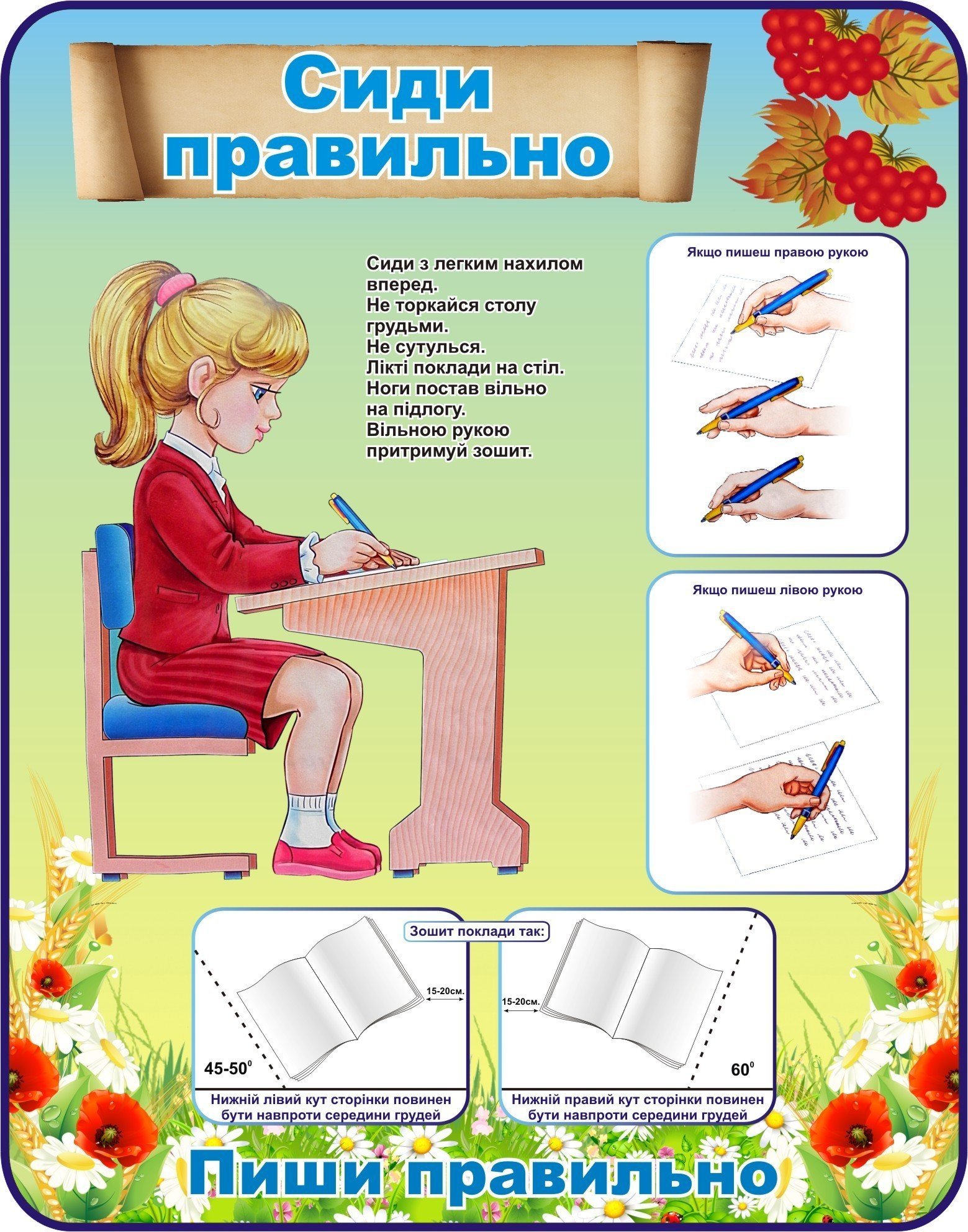 Стенд сиди правильно в начальной школе