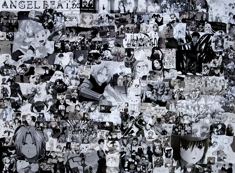 ![Аниме коллаж чб]()