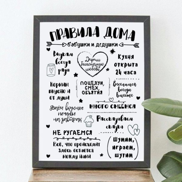 "Правила дедушки" - это постер, который вдохновит и напомнит о важных жизненных мудростях. На этом постере собраны ценные советы и правила, наработанные годами опыта и пройденными испытаниями. Они помогут нам стать лучше и мудрее. Этот постер подойдет для любого возраста - он будет полезен как молодым людям, только начинающим свой путь в жизни, так и тем, кто уже накопил опыт и хочет делиться своей мудростью с окружающими. Правила дедушки - это компактный набор ценностей и принципов, которые помогут нам сохранить и развить характер, стать более ответственными и успешными во всех аспектах нашей жизни.
