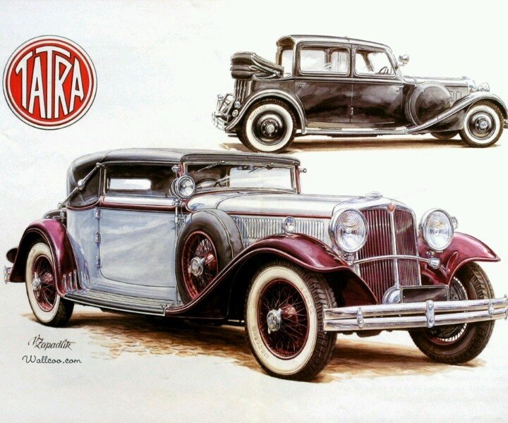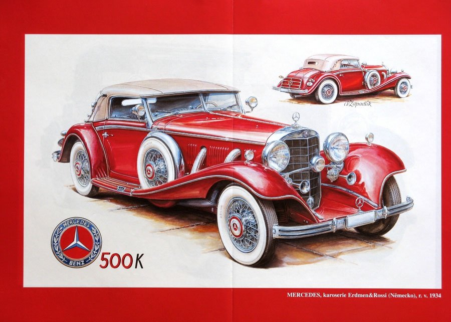 ![Рисунки ретро автомобилей художника Вацлава Западлика]()