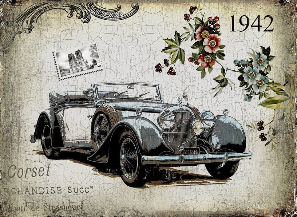 Ретро автомобили декупаж