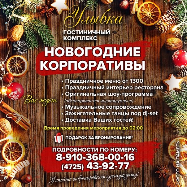 Новогодний корпоратив - это яркое и веселое событие, которое собирает всех сотрудников компании вместе для отличного времяпровождения. На постере представлены яркие и праздничные изображения, символизирующие наступающий новый год и радостное настроение: праздничные фейерверки, ёлка с яркими украшениями, счастливые люди в праздничных нарядах. Все это создает атмосферу веселья и праздника, принося радость и положительные эмоции. Новогодний корпоратив - это также прекрасная возможность для коллег пообщаться в неформальной обстановке, поделиться своими достижениями и планами на будущее, что способствует укреплению командного духа и повышению мотивации сотрудников.