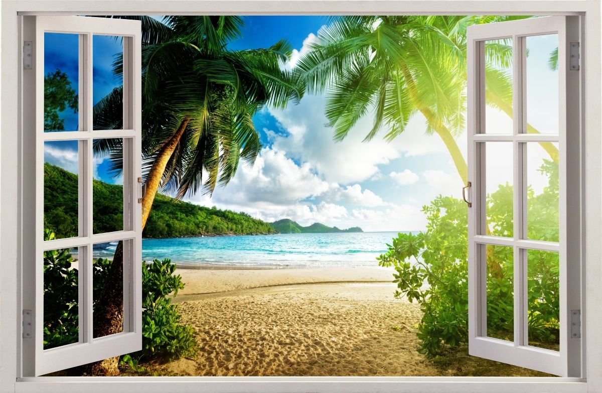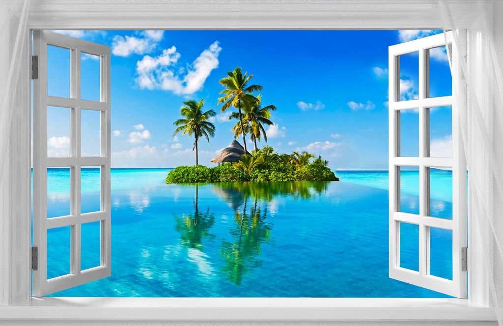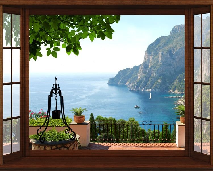 ![Фотообои вид на море из окна]()