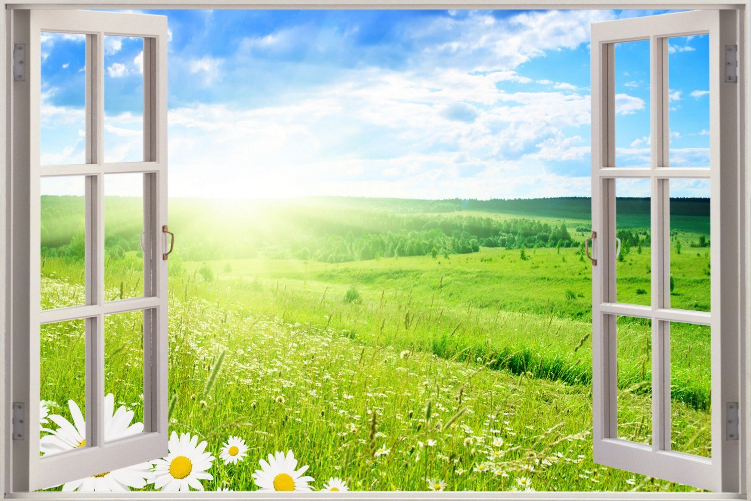 Вид из окна на луг фото