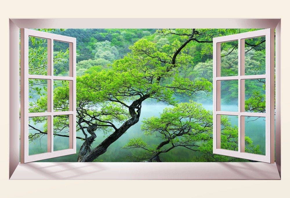 ![Фотообои окно в природу]()
